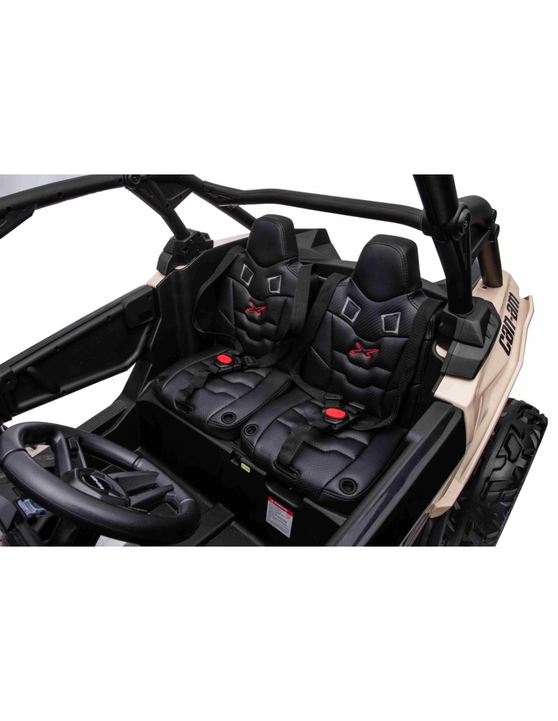 Can-Am Maverick UTV i 1:4 størrelse med plads til 2 børn og klar til ethvert terræn. Leveres komplet med oplader og fjernbetjening.