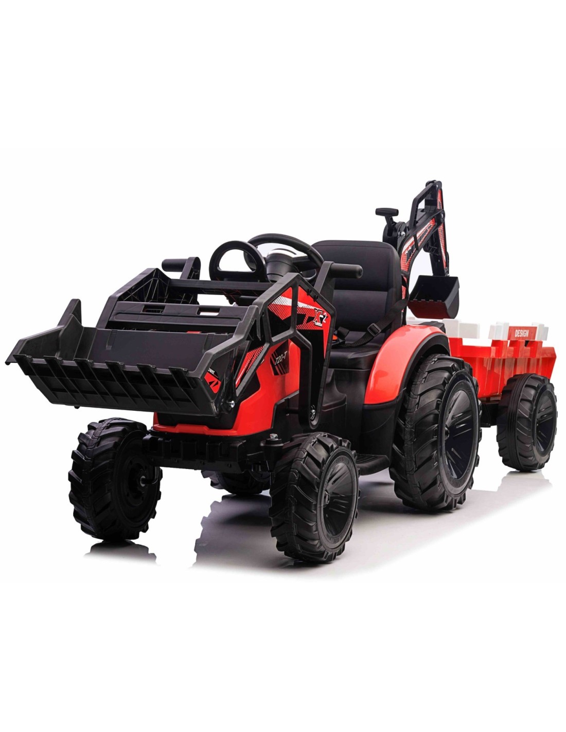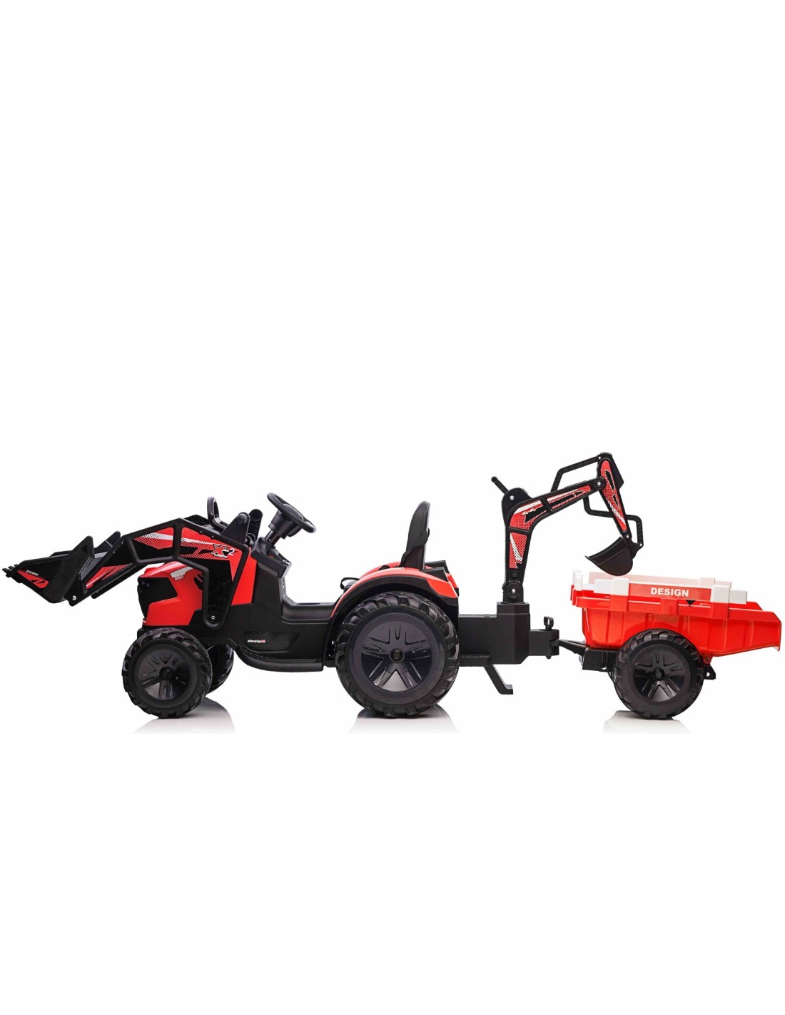 EL Traktor med frontskovl, gravekran og trailer til børn 21,6V