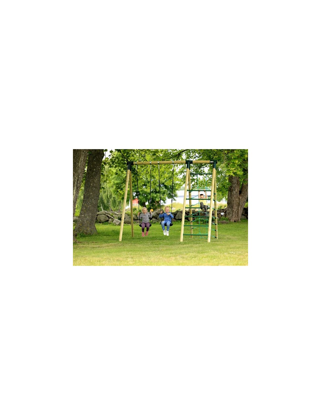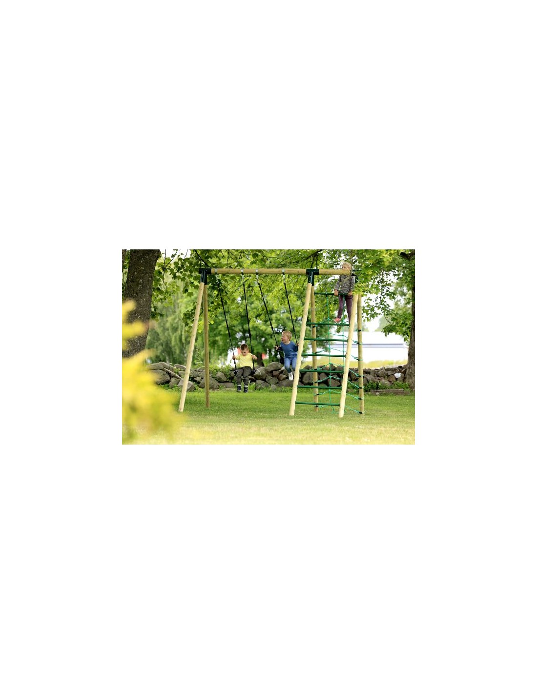 - Hörby Bruk Træ Gyngestativ Active High med klatrenet...
