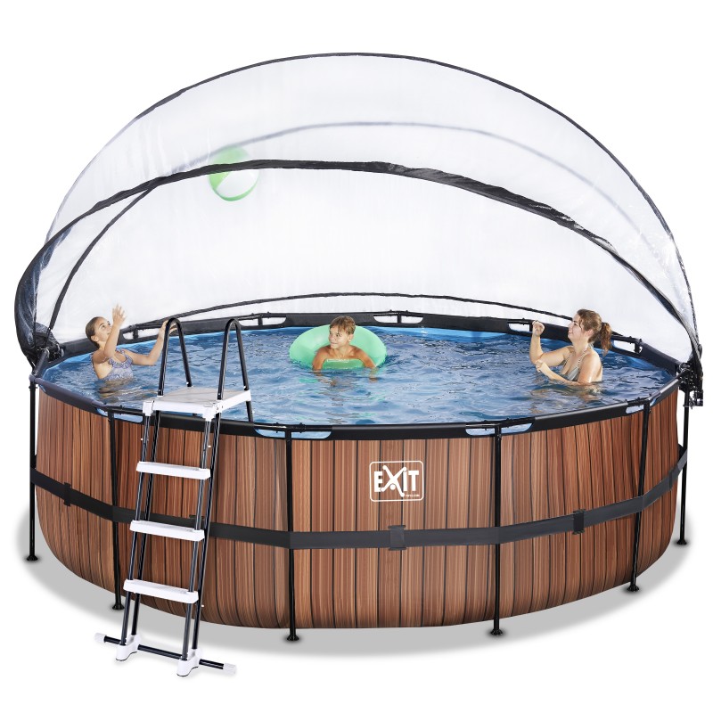 Wood pool ø450x122cm med dome og filterpumpe - EXIT