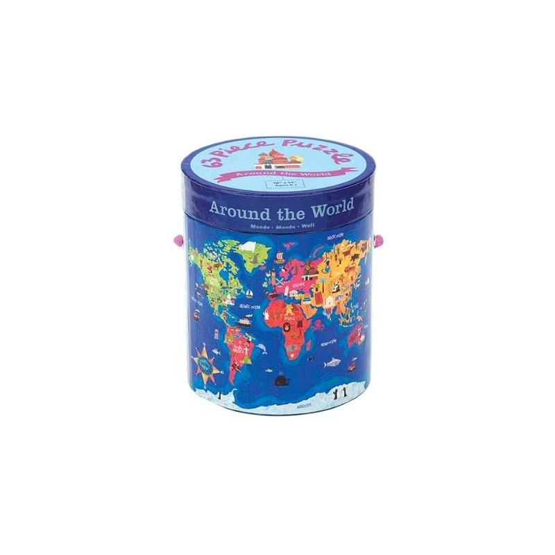Farvestrålende og flot puslespil fra Mudpuppy med lande, oceaner, monumenter og ikke mindst dyr.