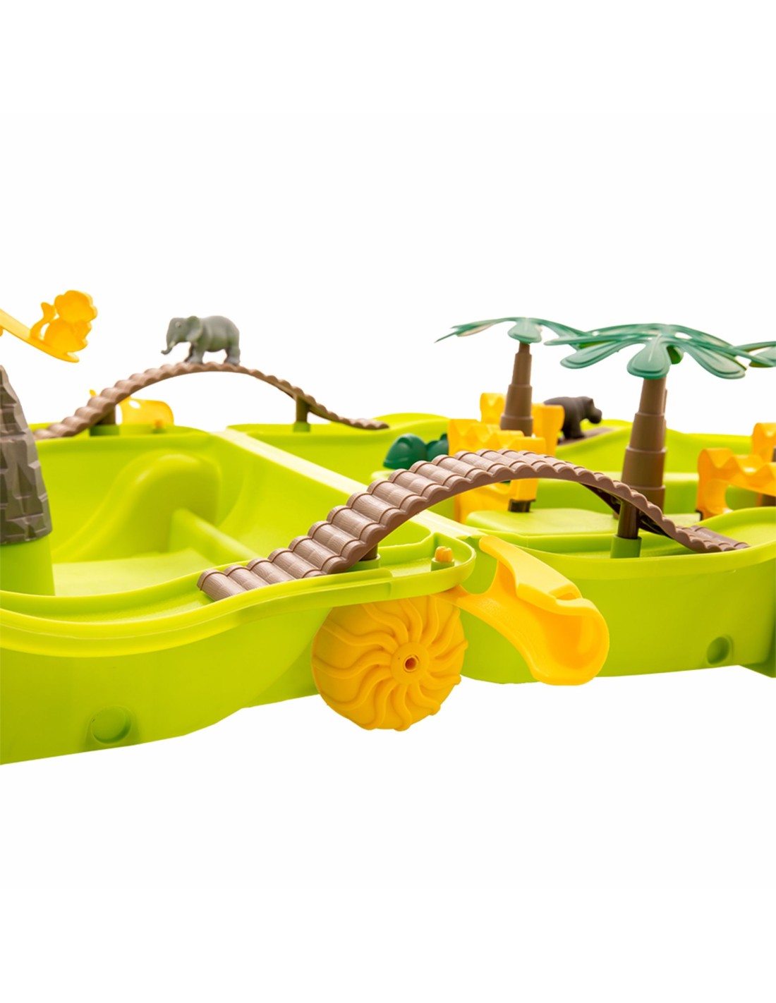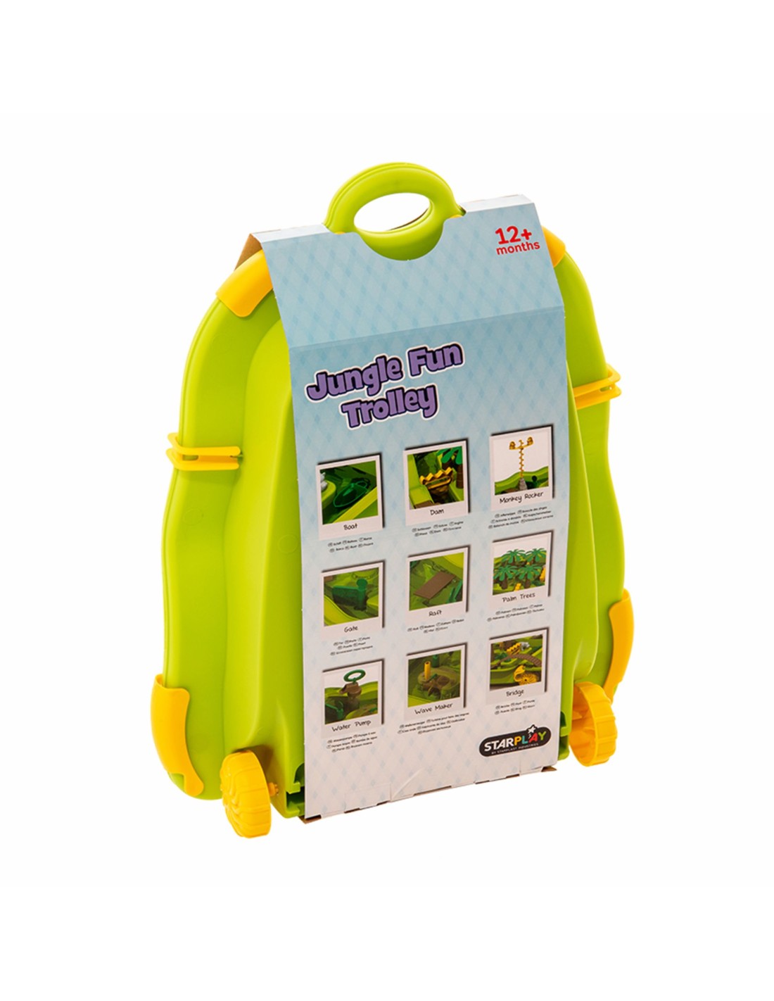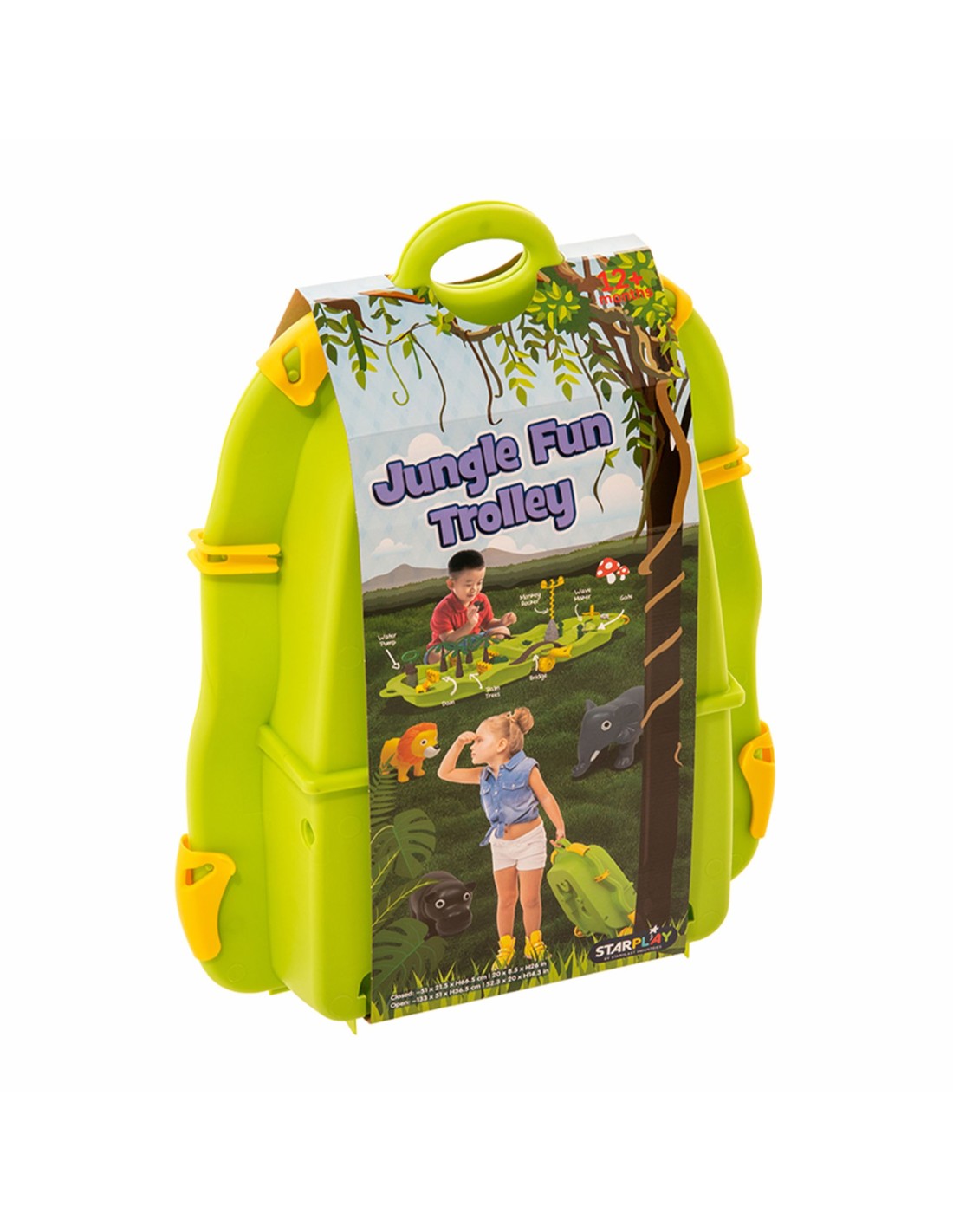 Jungle Vandleg Trolley er en sjov og interaktiv vandstation, der kan fyldes med op til 5 liter vand. Med indbygget pumpe, rutsjebane og forskellige dyrefigurer, tilbyder den timevis af underholdning og læring for børn. Perfekt til udendørs leg og vandaktiviteter.